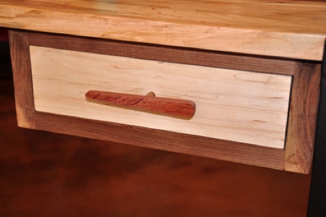 Ambrosia Maple top with Walnut drawer box surrounds,
