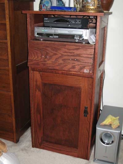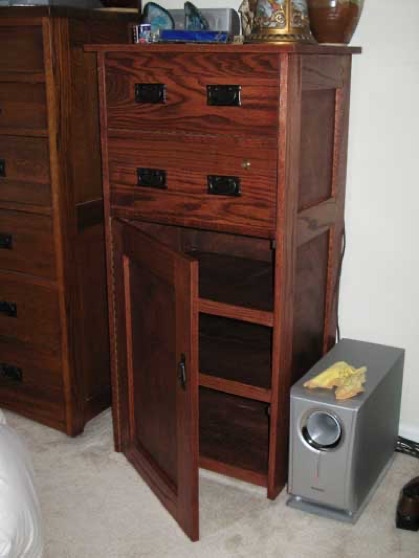 This Mission style dresser is designed to hold jewelry which locks. The top section folds down using a piano hinge.