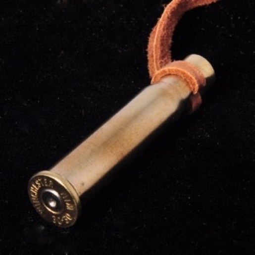 Bullet cartridge necklace with leather lanyard