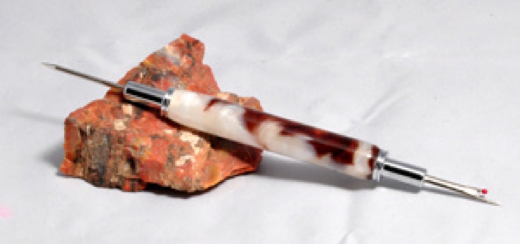 A traditional seem ripper on one end and a stiletto on the other end this tool is very versatile as well as beautiful.