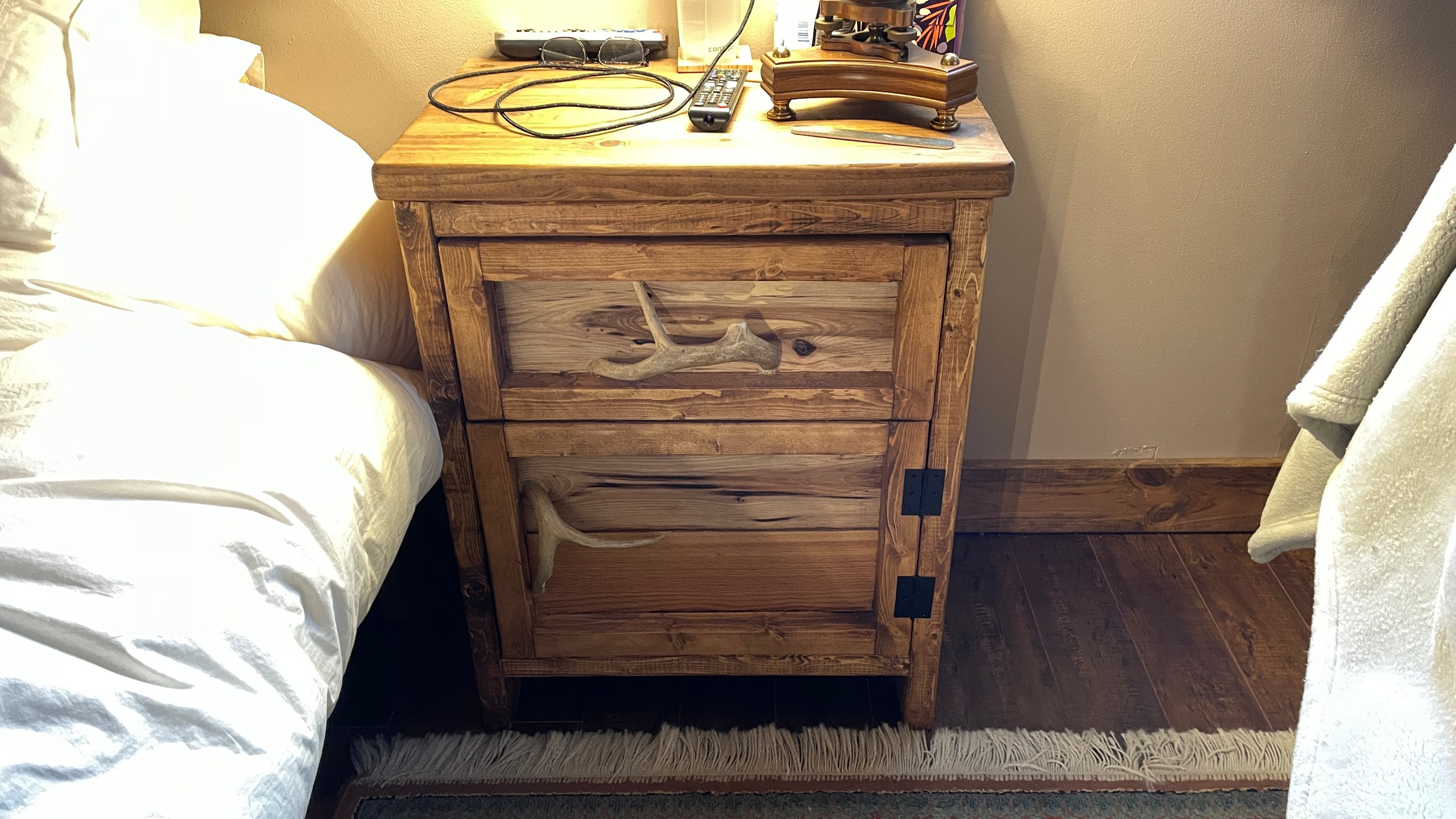 Pine aged dresser with antler handles