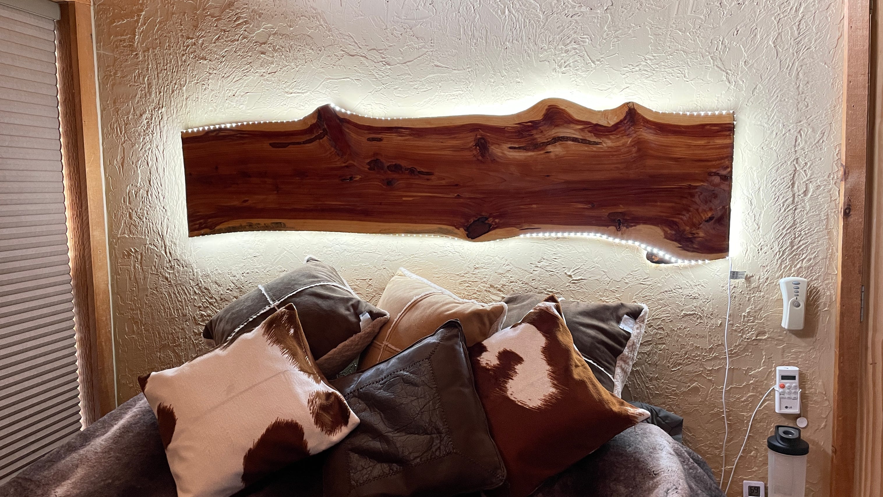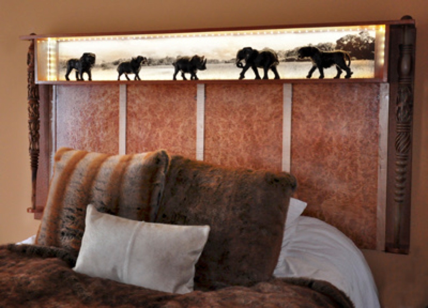 Below are the two walking sticks purchased in Botswana. These flank either side of the headboard; infact, the headboard was designed around these sticks.