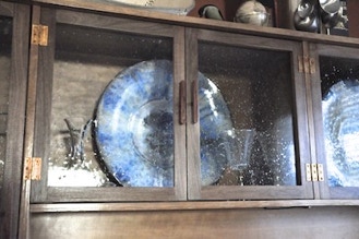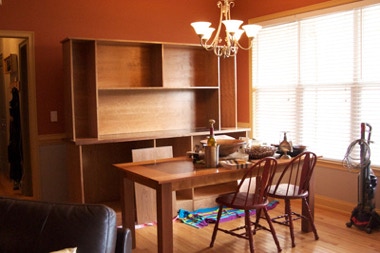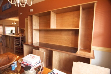 The serving area was made from a 62" piece of black marble, a rescued item from a house renovation.